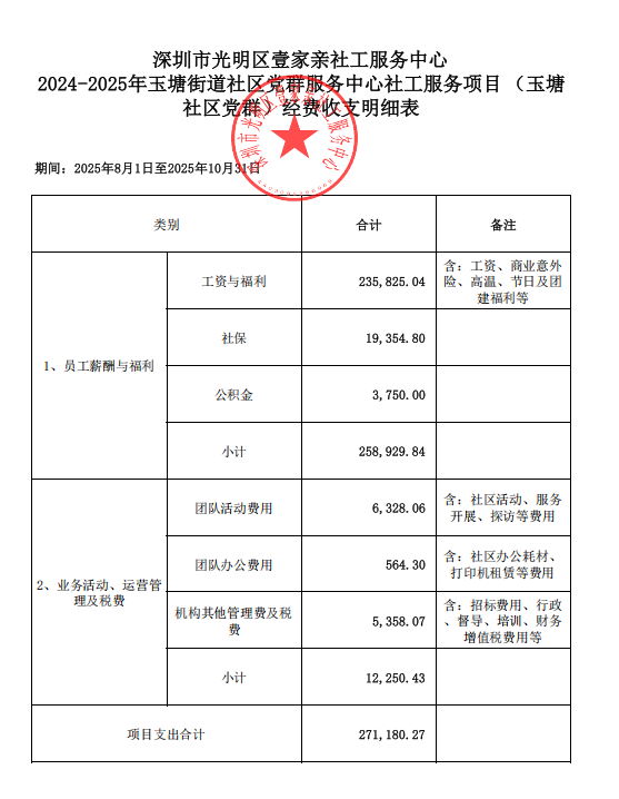 【光明壹家亲】玉塘街道社区建设领域购买社会工作服务项目 (玉塘社区党群服务中心)(编号:CMZX20241011164)20250801-20251130
