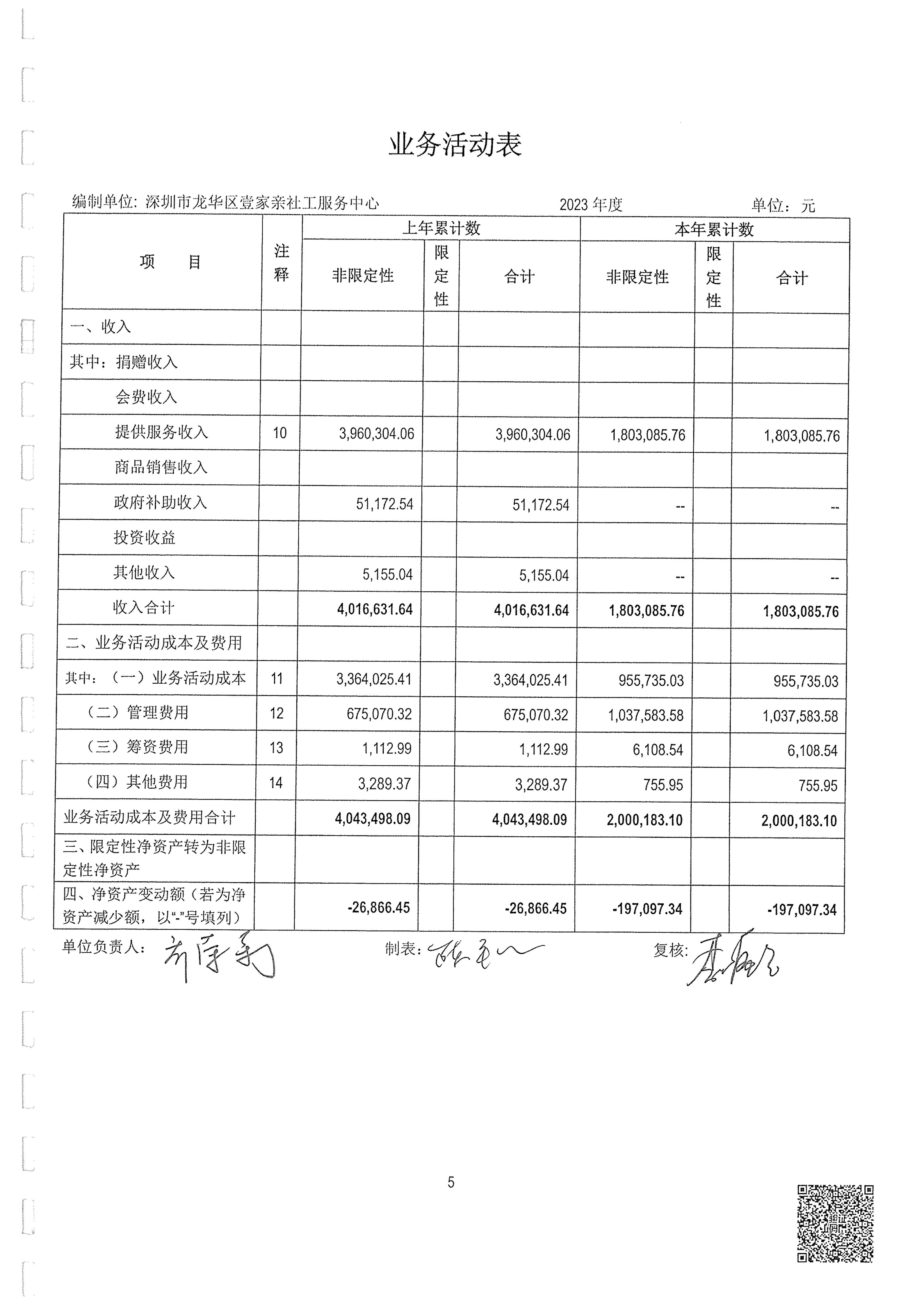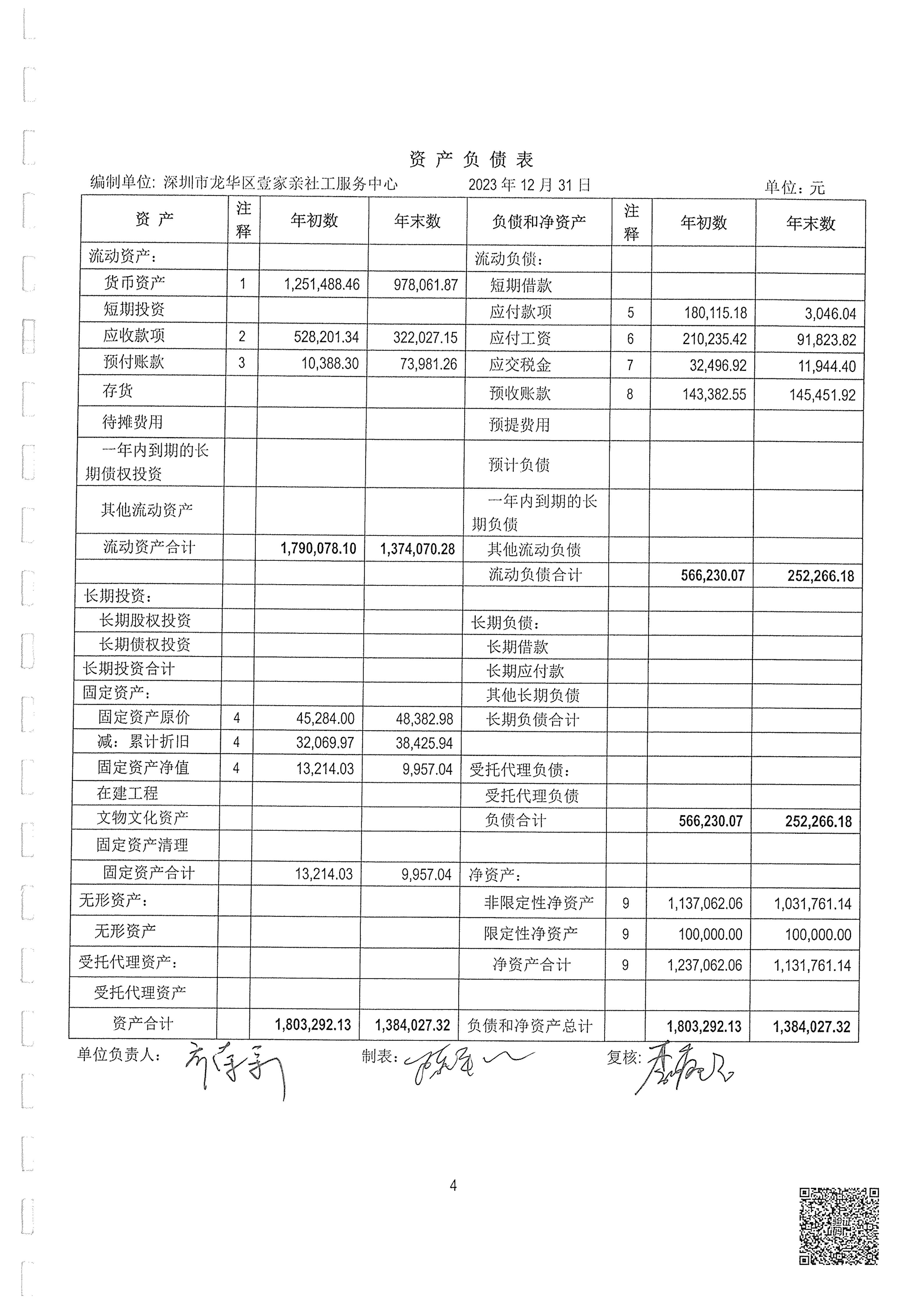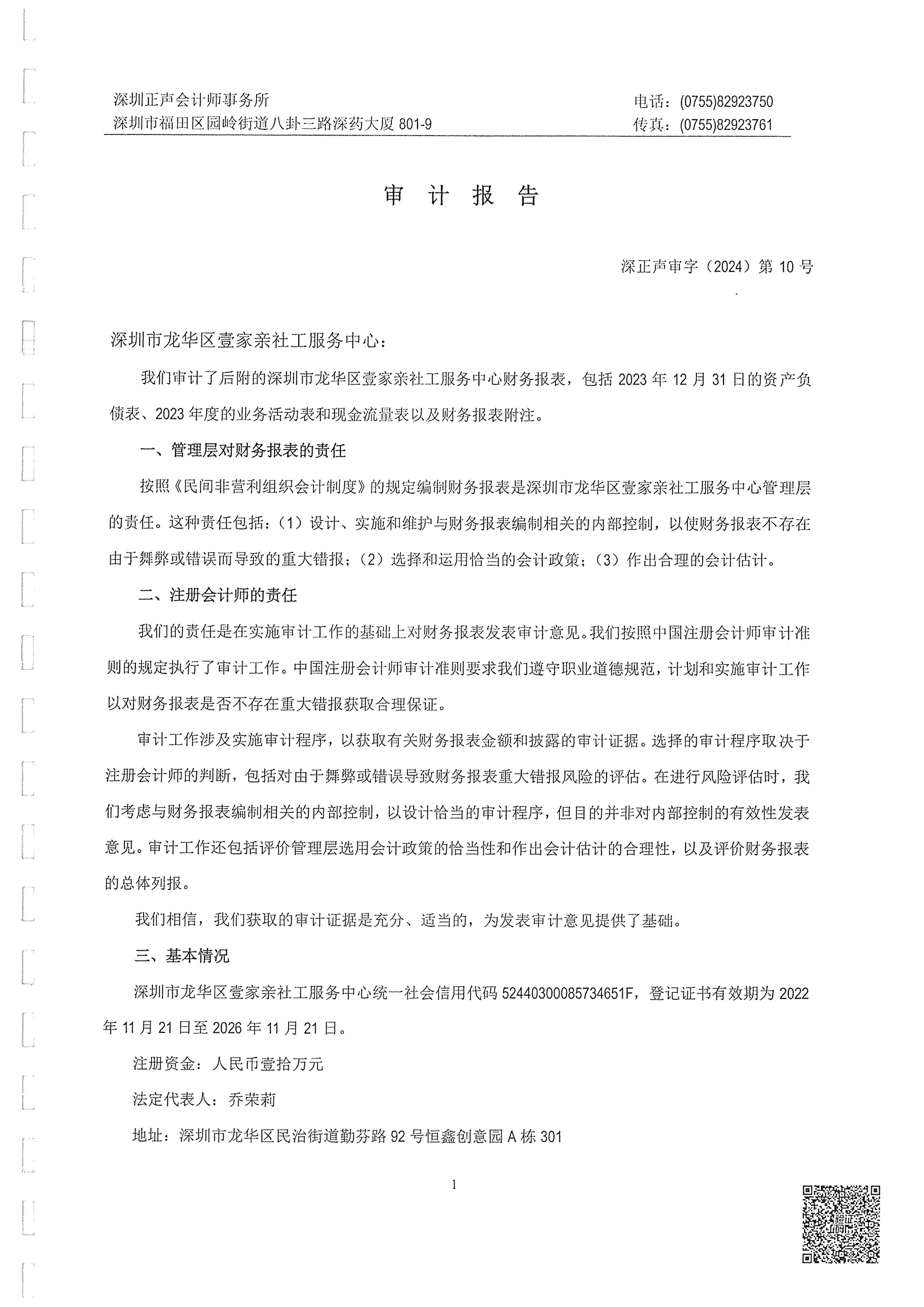 【龙华壹家亲】深圳市龙华区壹家亲社工服务中心2023年度审计报告