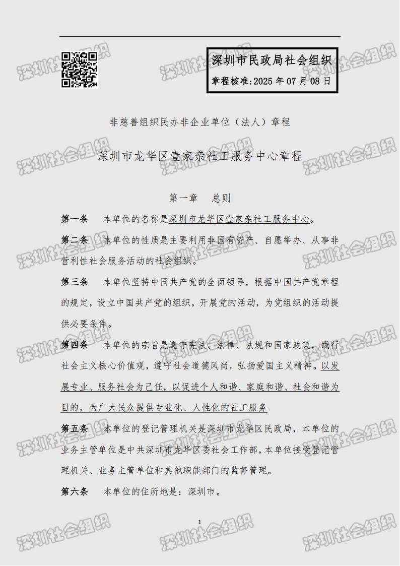 【龙华壹家亲】深圳市龙华区壹家亲社工服务中心章程20250708
