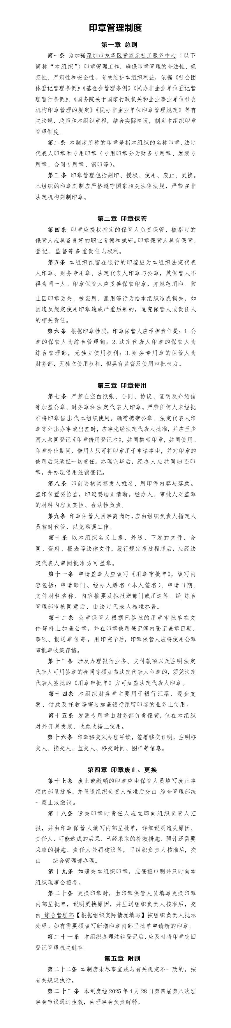 【龙华壹家亲】印章管理制度